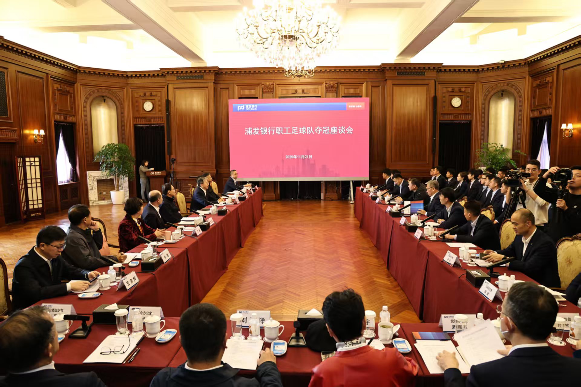近日,2025年中国职工足球超级联赛总决赛圆满落幕,代表上海出征的浦发银行职工足球队凭借顽强拼搏的斗志,一路过关斩将,最终勇夺全国总冠军。这一辉煌战绩不仅为上海职工体育事业增添了浓墨重彩的一笔,更成为上海建设全国足球发展重点城市的有力实践与生动注脚。为深入总结夺冠经验,弘扬拼搏精神,11月21日,市总工会专题召开“弘扬拼搏精神 凝聚发展力量——浦发银行职工足球队夺冠座谈会”。中国职工文化体育协会会长李守镇,上海市总工会党组书记、副主席侯继军,浦发银行党委书记、董事长张为忠等出席。