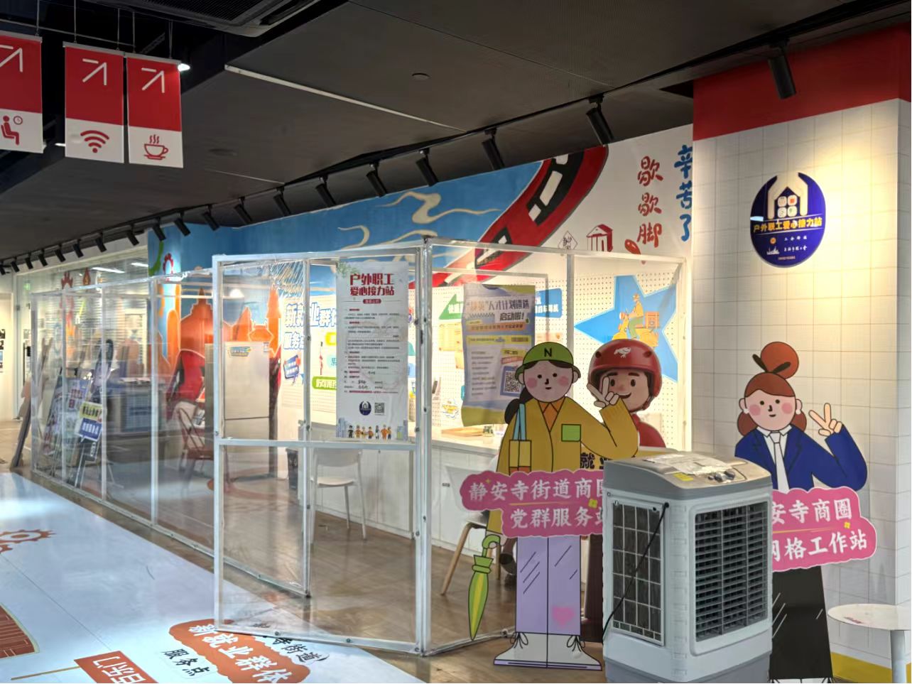 夜幕落下,静安寺商圈依旧灯火流动。在上海CP静安商场B1,一间24小时户外职工驿站亮着温暖的灯光,像街角一盏不灭的灯,默默守护着过往的户外劳动者与夜归人。