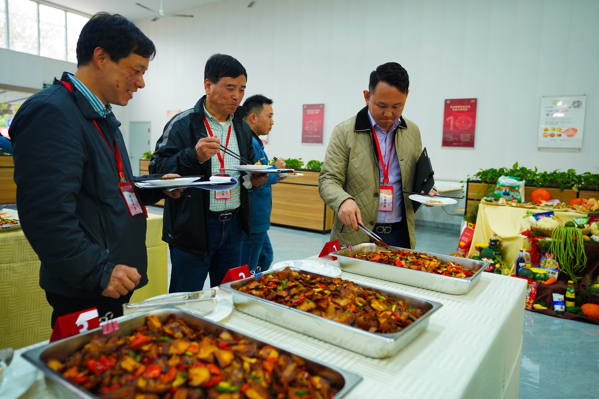 比赛分为“工作餐大锅菜”和“创新小炒菜”两大项目,每类需完成一道指定菜和一道自选创新菜。宝鸿公司工作人员介绍,赛制中对“工作餐大锅菜”项目设置了较为严苛的实战标准。“大锅菜量大,要保证每一勺味道稳定,其实比做小炒更难。”一位从知名餐饮连锁企业加入宝鸿的厨师坦言。比赛现场,指定大锅菜“回锅肉”被演绎出多样风味,肉片煸至微卷、香干饱吸肉香,赢得评委点头。创新菜品区展露厨师功底,卤味拼盘化身创意造型,金汤双鲜、双椒豆腐鱼等菜品香气四溢。获一等奖的厨师在分享“肥肠尖椒鸡”秘诀时,详细介绍其如何通过多道工序处理普通食材,使之达到“软糯不腻”的出品标准,也正是大锅菜精细化制作的体现。