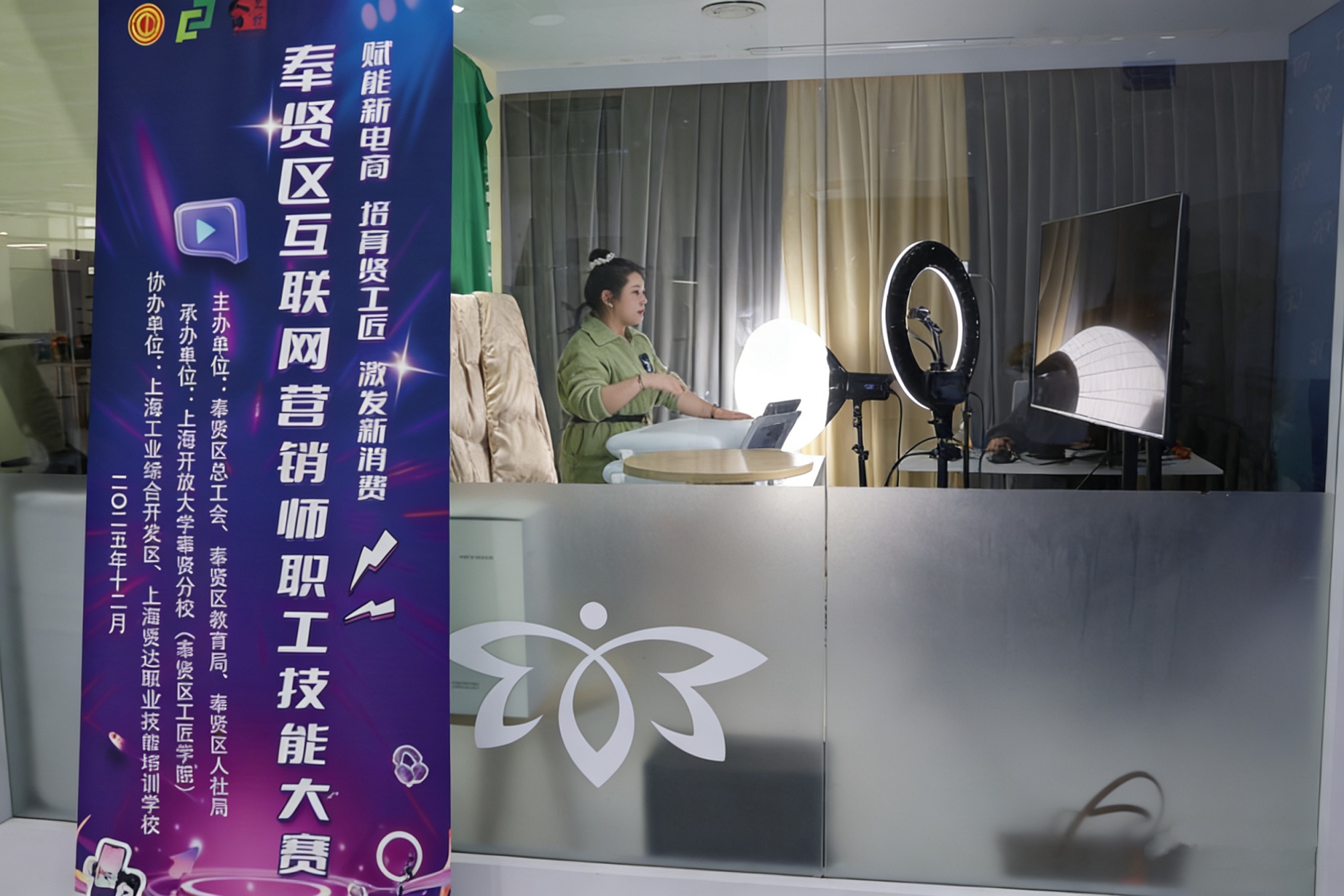 记者观察到,本次比赛参赛选手中,既有运营本土生活账号的自媒体主播,也有在各大平台尝试带货的实践者,更多的是寻求职业新路径的自由职业者与转型者。一位全职在家照顾家庭的参赛者告诉记者,学习直播技能为她打开了新的可能性,使其在兼顾家庭的同时也能拓展个人事业。值得关注的是,本次决赛选手中,超过半数来自奉贤区工匠学院今年开设的“互联网营销师”培训班。该培训班面向社会招生,全年已开设两至三个班级,旨在系统化培养数字营销技能人才。许多学员在完成培训并考取职业技能证书后,选择通过本次大赛进一步锻炼实战能力。