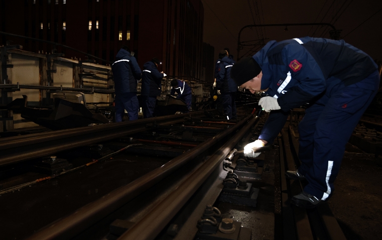 “进入三九严寒,低温会对道岔转折设备造成机械部件卡阻、杆件变形等问题。如果碰到雨雪天气,道岔尖轨与基本轨之间以及杆件连接处容易结冰冻粘,阻碍道岔转换,影响列车变道。”瑟瑟寒风中,杨帅搓着手向记者介绍道,他们今天要对线路上的2副道岔转辙设备进行维护,擦除内部水汽,并对道岔动作处进行加油,防止低温结冰。“这几天是寒潮天,以往按图定发车时刻出场的巡道车,会提前半小时出发。因此,我们今天晚上的作业时间只有3个半小时,时间很是紧张。”