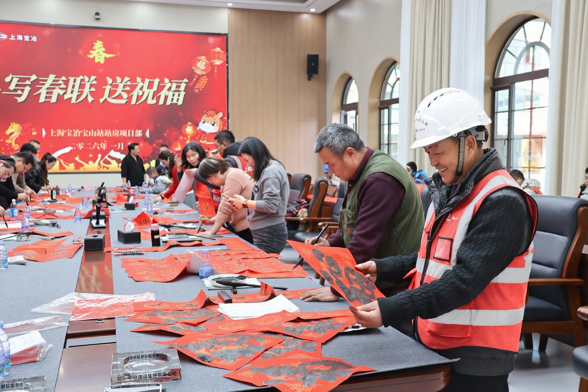 此次活动共送出春联两百余副,以班组为单位发放,覆盖宝冶及项目相关班组,让一线建设者感受到关怀。据了解,上海宝山站是上海北部唯一大型高铁枢纽,建成后将弥补上海北部无高铁枢纽的空白。此外,宝山站是中国第二座双层车站,高架层为沪渝蓉高铁(4台8线),地下层为沪通铁路(4台10线),将实现铁路与城市空间的高效融合。上海宝冶承担上海宝山站站房2标段项目,目前,该项目正全力建设中,预计在春节前完成基坑底板浇筑。