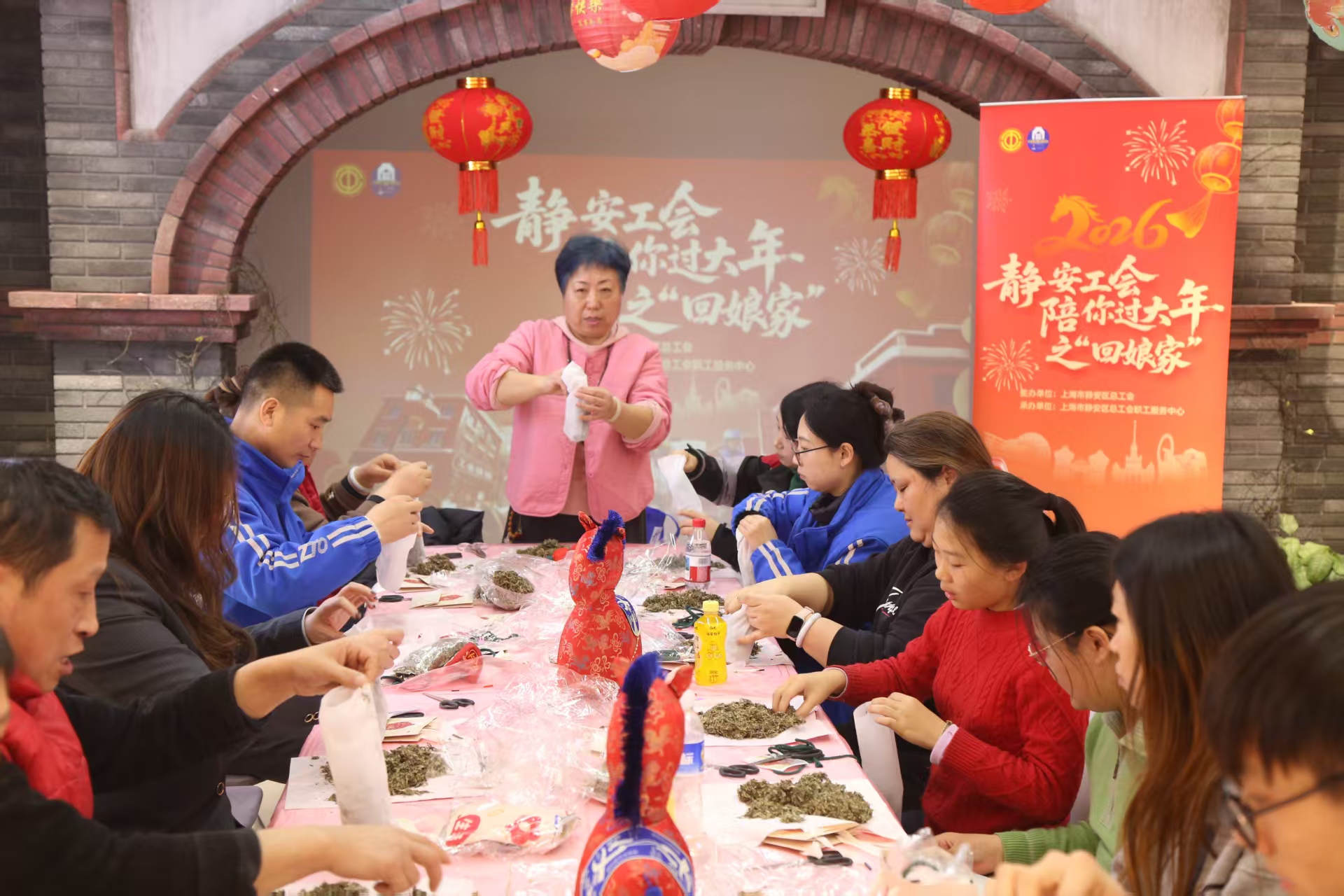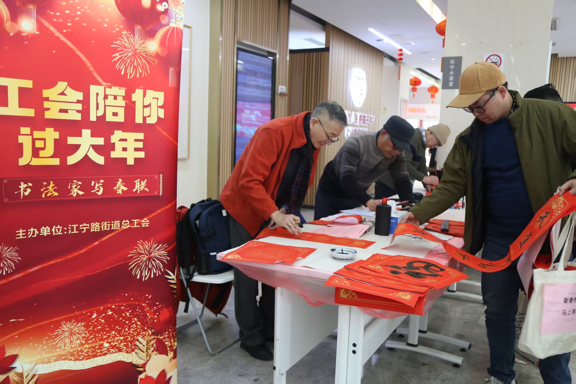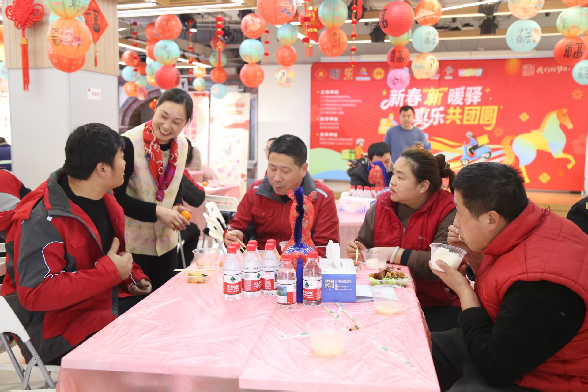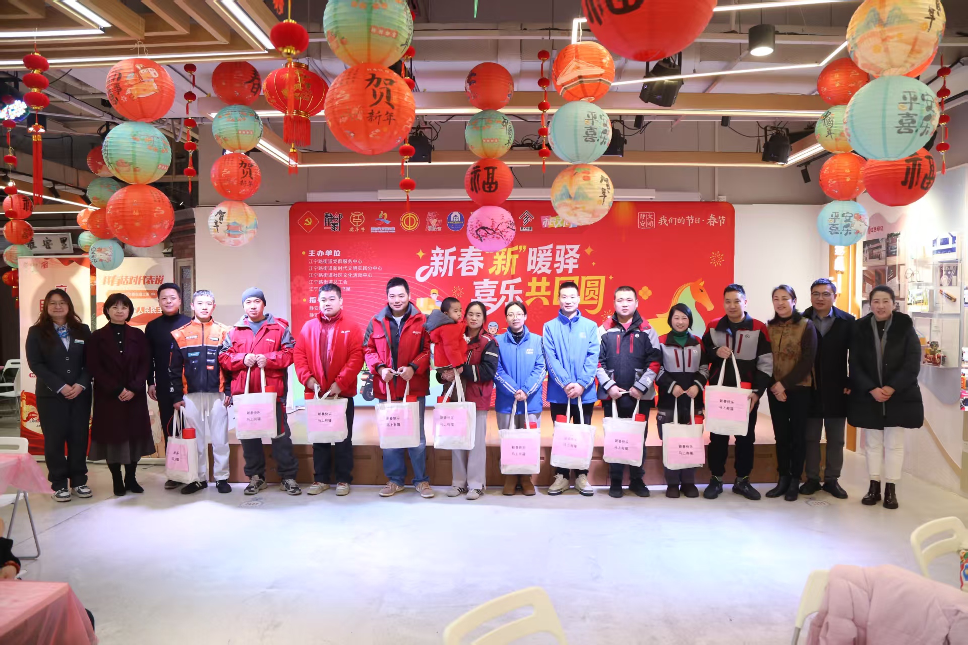 农历新年将至,年味渐浓。2月4日中午,江宁路街道党群服务中心内欢声笑语、暖意氤氲,“新春‘新’暖驿 喜乐共团圆——2026年江宁路街道党群服务中心@你过大年”新春主题活动在此温情启幕。百余名外卖骑手、快递小哥等新就业形态劳动者代表欢聚一堂,共赴团圆家宴、体验传统年俗、观赏文艺展演、领取暖心礼包,在奔波忙碌的间隙,卸下疲惫,感受浓浓的节庆氛围与“家”的温情守护。