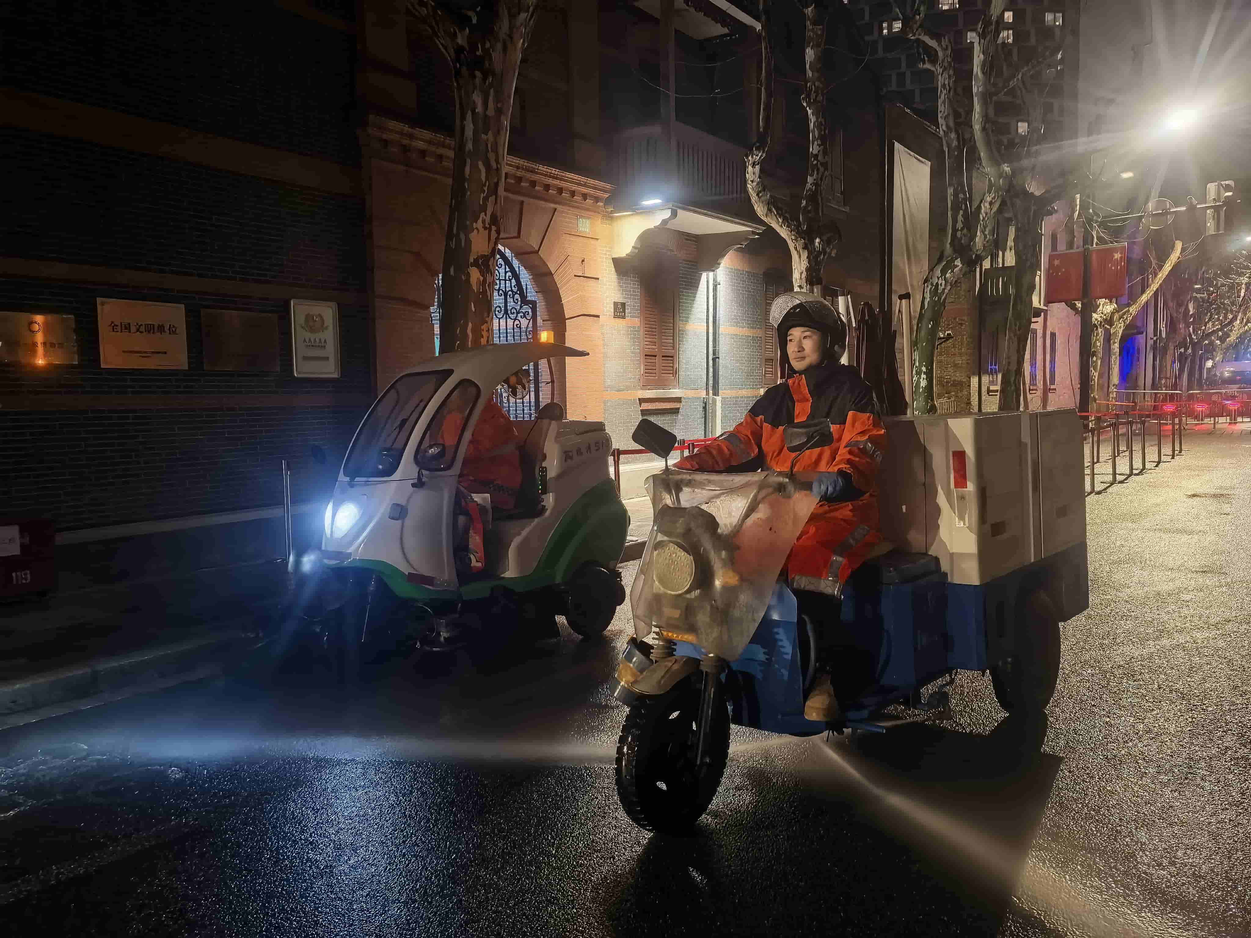 “春节客流量大,保洁力度也必须跟上。”赵要钱一边检查小型冲洗车一边说。他和班组63位同事承担着19万余平方米路面的机械化保洁任务。春节期间,中共一大纪念馆周边每分钟客流量将达100至120人,高峰时甚至超过200人。为此,班组形成了“夜间深度保养、白天养护、循环保洁”相结合的“春节工作法”,并针对激增的生活垃圾和落叶,采取分组作业——4人一组,每天需负责8000至10000平方米区域。