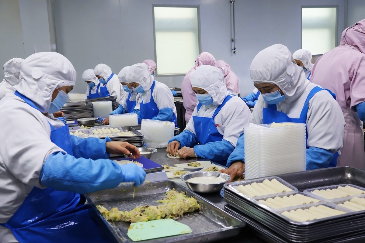 正月初八,开工第一天,位于松江区的上海蒸笼头食品有限公司工厂内已是一派热火朝天的景象。生产线全速运转,机器轰鸣与员工忙碌的身影交织。春节假期刚过,企业返岗率接近100%,14条产品生产线已全部开动,全力保障节后市场供应。