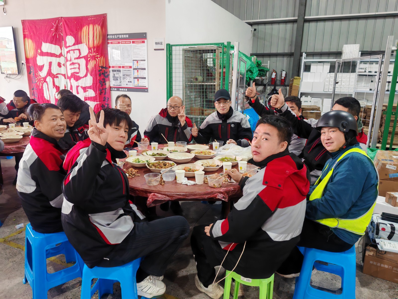 记者在现场看到,原本12点定下的开饭时间,由于小哥们手上的活儿多,返回站点的时间不一,往后推迟了大约半小时。一位快递小哥表示,平时午餐都是自己随便做一点,要么就是路边小饭店解决一下,今天一桌子的菜,丰盛美味,吃完下午开工更有力气了。