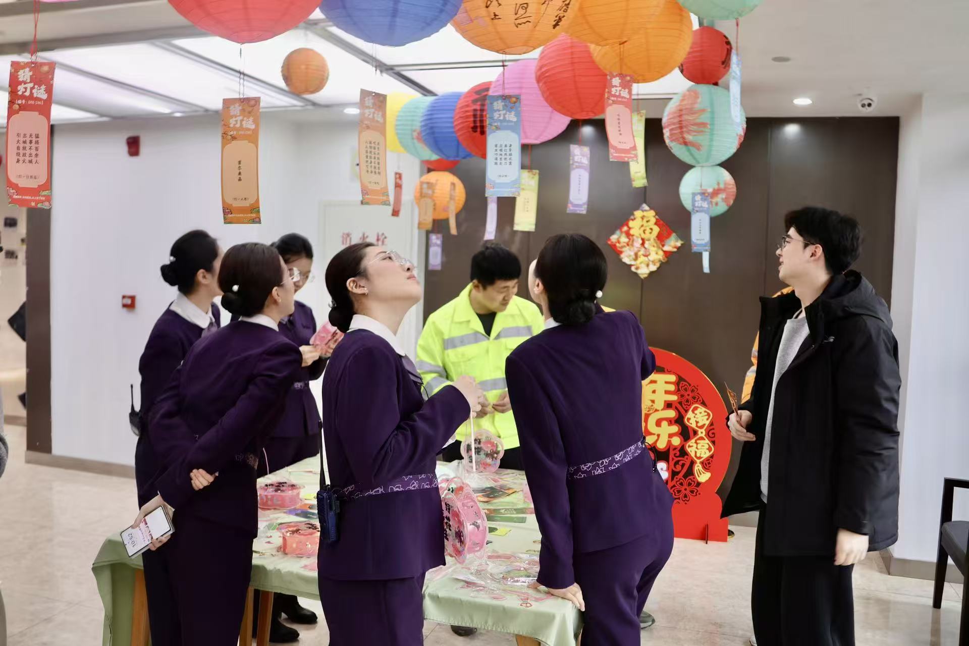 “自有一日出头天,打一字”“千里隔壁,打一地名”……在猜灯谜区域,几十条条涵盖民俗知识与马年吉祥话的灯谜,被大家围得水泄不通。乘务员们或凝神思索,或与同伴小声探讨,选定谜面后便兴冲冲前往兑奖处核对。值得一提的是,猜中灯谜的职工均可领取一串虹桥行车公寓职工亲手制作的,酸甜的香气扑鼻而来糖葫芦。“这是我们公寓职工一早熬糖、串果做的,特意作为灯谜大奖,送给最厉害的团队。”食堂管理员王新玉说道。