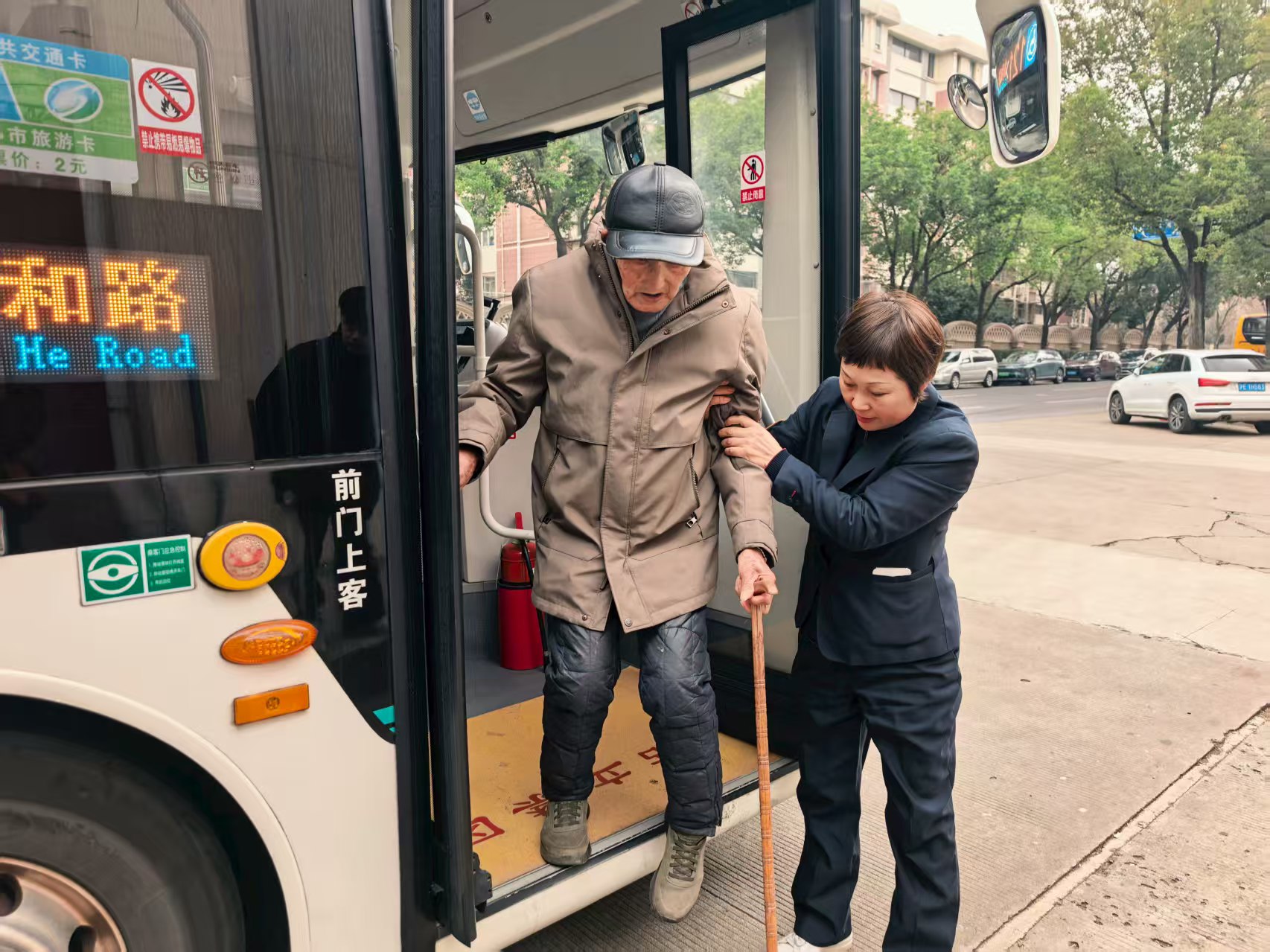 每天凌晨,当城市还在沉睡,胡新梅已经迎着黎明前的微光到岗;夜幕降临,万家灯火亮起,她才结束一天的奔波。十六年来,这位巾帼司机把“爱心、用心、耐心”揉进每一个服务细节里:看到老人上车,她总会稳稳停好车,起身搀扶;遇到行动缓慢的乘客,她习惯性地轻踩刹车,多等几秒;赶车的孩子们蜂拥而至,她一遍遍叮嘱“坐稳扶好”。有位常乘车的老人每周固定要去医院,胡新梅默默记下老人的乘车时间和站点,到站时总会温馨提醒一句“阿姨,医院到了”。久而久之,这份默契的关怀成了车厢里最动人的风景。