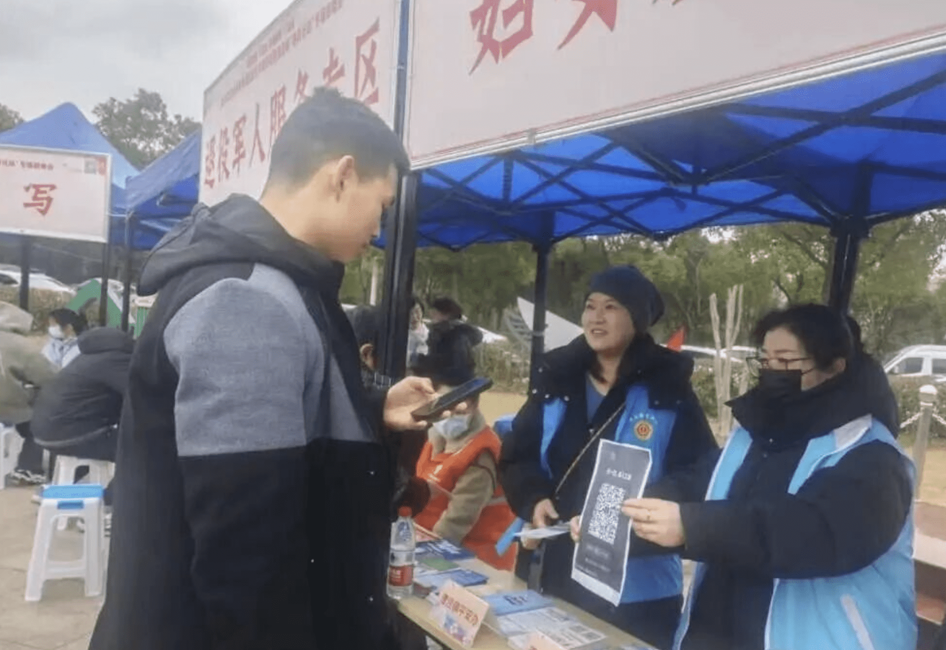 “来,这是我们企业的简介,可以拿一张看看。”活动现场,漕泾镇总工会专门设立服务摊位,工作人员主动向前来咨询的群众发放宣传资料和宣传品,并面对面为求职者提供法律维权、帮扶救助、工会普惠等咨询服务,让大家切身感受到工会组织作为职工“娘家人”的贴心关怀。此外,镇总工会还积极推广“扫码入会”工作,求职者可通过现场扫码的方式方便快捷地加入工会。