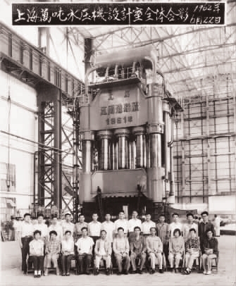 1962年春天,经过四年艰苦奋战,万吨水压机完成总装,一次调试成功。试验中,它最高提供的极限压力超过了1.6万吨。同年6月22日,那张竣工留念的照片被定格下来。