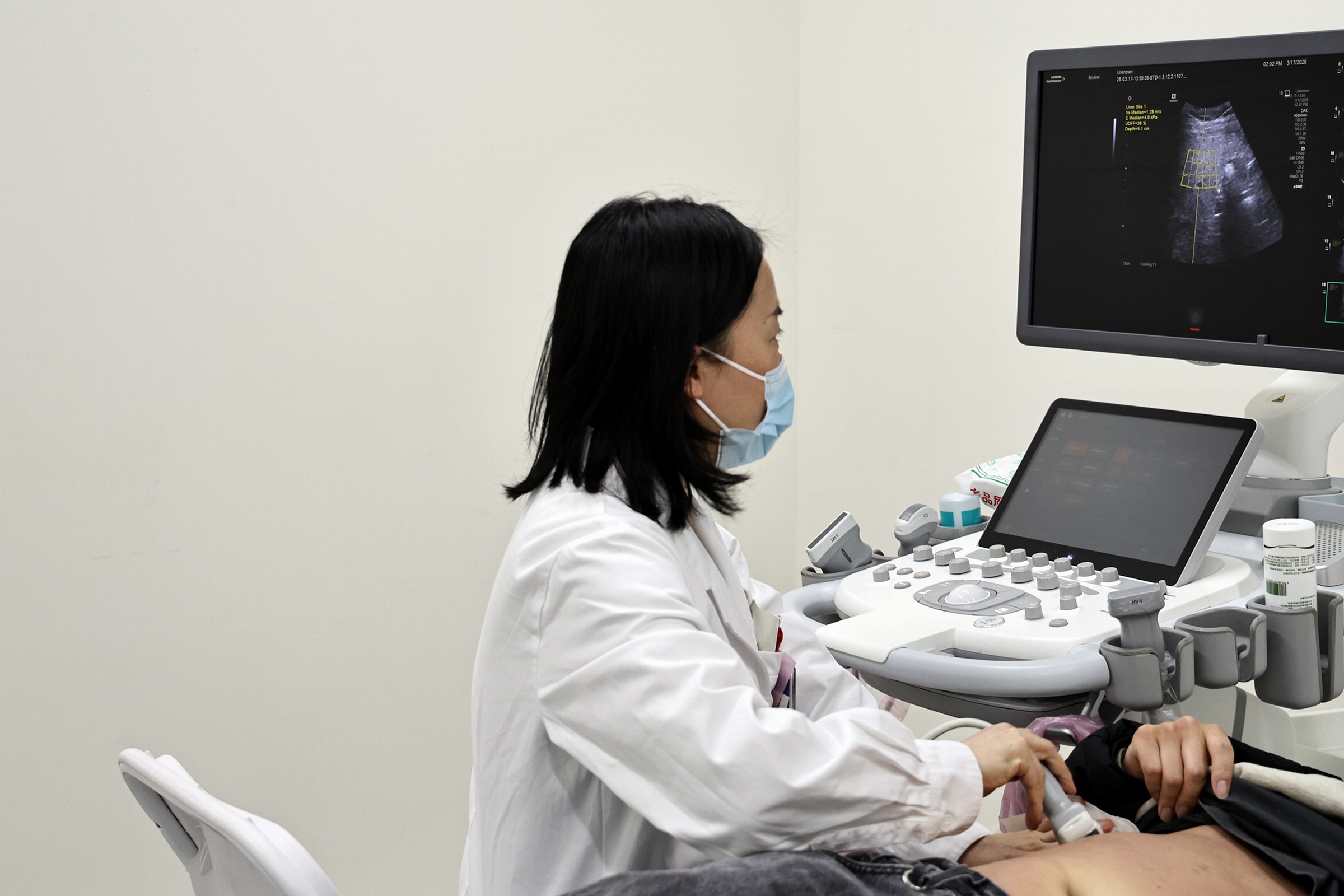 此次义诊所采用的超声脂肪肝定量诊断技术,正是今年1月24日由复旦大学附属华山医院和复旦大学附属中山医院两家国内著名医院牵头制定的《超声衍生脂肪分数评估代谢相关脂肪性肝病中国专家共识(2025 版)》中核心推广的超声衍生脂肪分数(UDFF)技术。在豫园商城华宝楼二楼,前来预约免费检查的余先生告诉记者,自己之前体检时被告知有重度脂肪肝,所以这次特意来检查确认一下。通过UDFF技术,医生给出了数据,余先生的肝脏脂肪含量比例正好在20%,介于中度和重度脂肪肝之间。医生建议余先生,通过合理饮食、适量运动以及药物控制,来治疗脂肪肝。