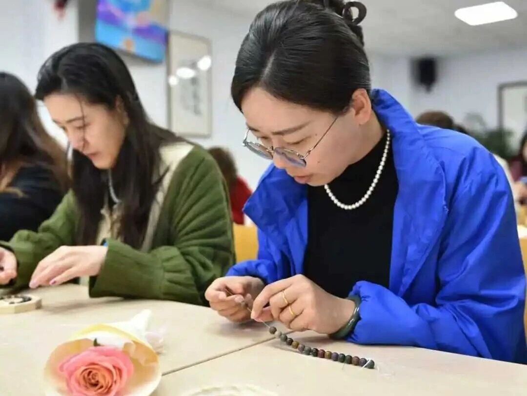 以手作之名,赴一场春日之约。在蓝滨公司工会组织的“珠韵巾帼,香满时光”活动现场,女职工们沉浸于非遗手作的魅力,在淡淡的中草药香中静心打磨香珠手串,于指尖流转间感受传统文化的疗愈力量。石电能源公司工会则带领大家制作艾灸锤,将温热的艾草香揉进布料,在慢手工中为自己和身边人攒满健康与暖意。远怀公司工会的DIY口红活动更添几分时尚气息,女职工们化身“调色师”,调制出属于自己的“独家色号”,那一抹抹亮色映照出她们自信从容的职场风采。
