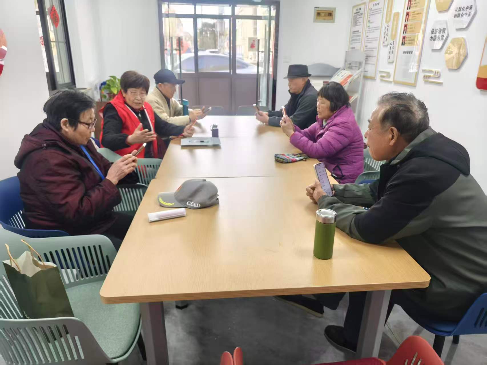 午后的阳光下,松江区古松社区活动室里,一位老年志愿者正耐心地教另一位老人用手机视频通话。这一幕,被定格在社区日常的暖意之中。