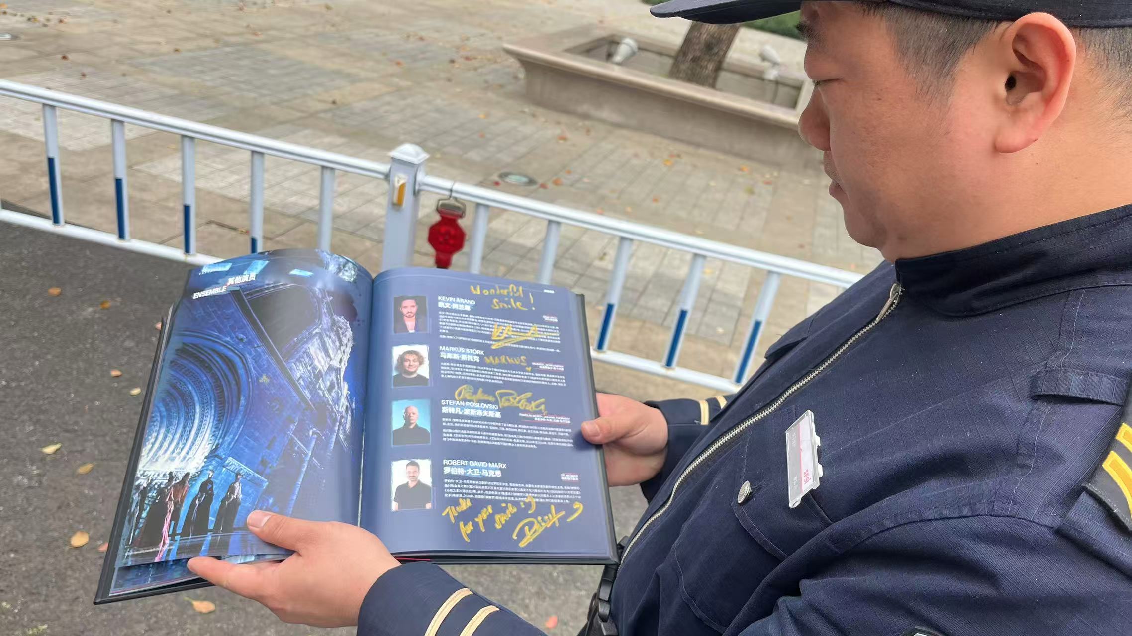 其实不止是为粉丝签名,上海文化广场的保安们似乎有一种特别亲和的魔力。此前,音乐剧《莫扎特!》的全体主创在演出手册上签下了每一个人的名字并送给了一位每天和他们“say hi”的保安。在人们的刻板印象里,保安和粉丝,保安和演员总是形成一种天然的屏障,有时甚至是对立的态势,但在文化广场,这些保安叔叔是桥梁,是和粉丝一样贴心的伙伴。