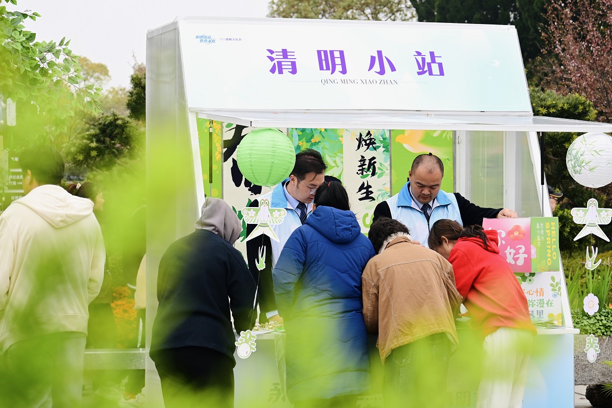顺应这一变化,古园在入口广场设置了便民驿站和民俗互动区,提供休息、引导等服务的同时,也融入文明祭扫、绿色祭扫的倡导。