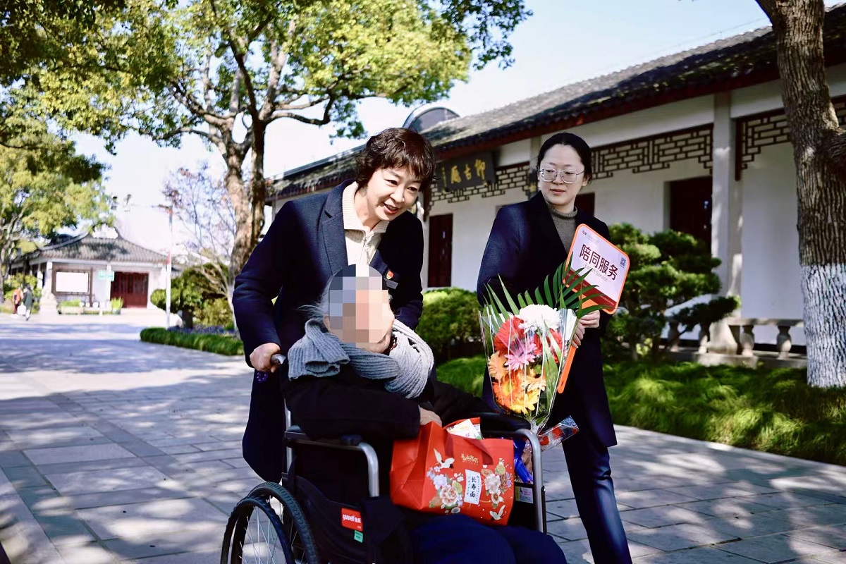 在“保秩序”的同时,服务的温度也在不断提升。近年来古园推出志愿者陪同祭扫服务,由内部员工和社工组成服务队,为高龄老人及行动不便人群提供预约陪同、轮椅推行等服务。