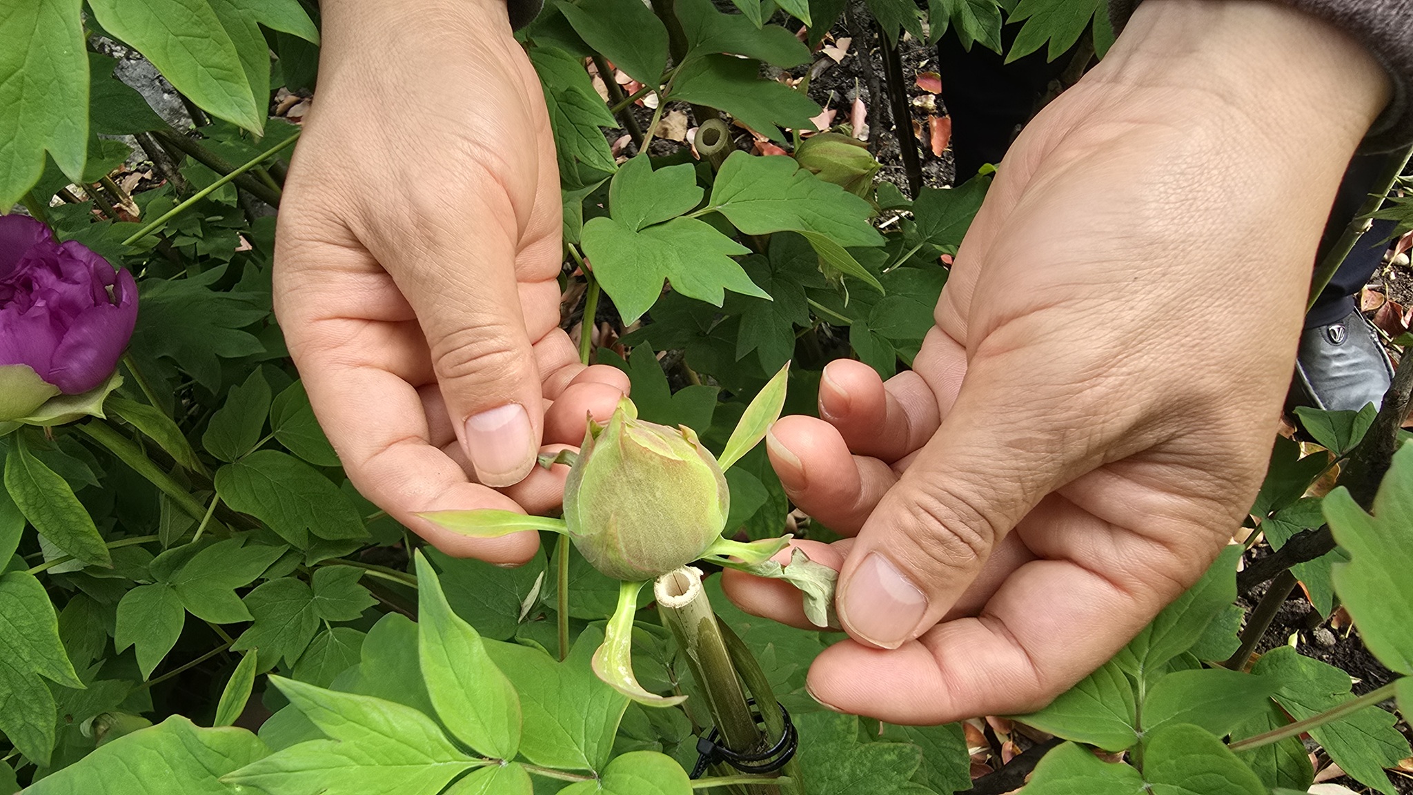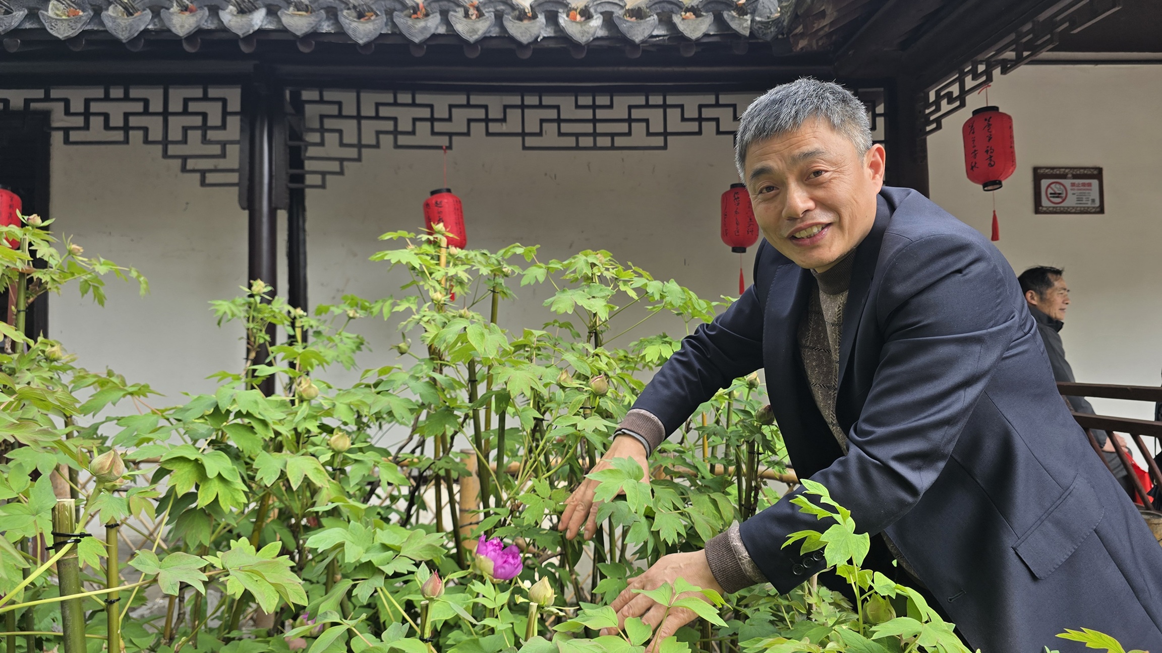 朱权的本事,多半是“跟”出来的。他并非园艺科班出身,2004年到公园,经历多个岗位,一步步走近这些植物。2020年,老组长退休,将照料这株牡丹的担子正式交到他和其他同事手中。