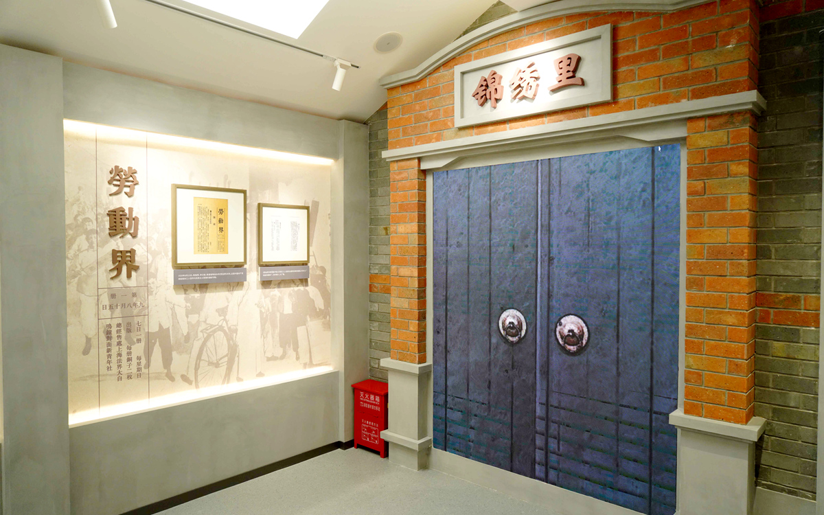 类似的多媒体、沉浸式展陈设计,在陈列馆内还有许多。记者在现场看到,为强调中共发起组决议在沪西小沙渡开办工人学校的史实,陈列馆对锦绣里门头进行了复原,大门采用内嵌式LED屏幕,模拟大门打开动作;《共产党宣言》从锦绣里大门内缓缓飞出,并定格与工人运动相关的内容,以此突出《共产党宣言》被教员带入沪西小沙渡的工人学校课堂,呈现马克思主义与中国工人运动结合的史实。
