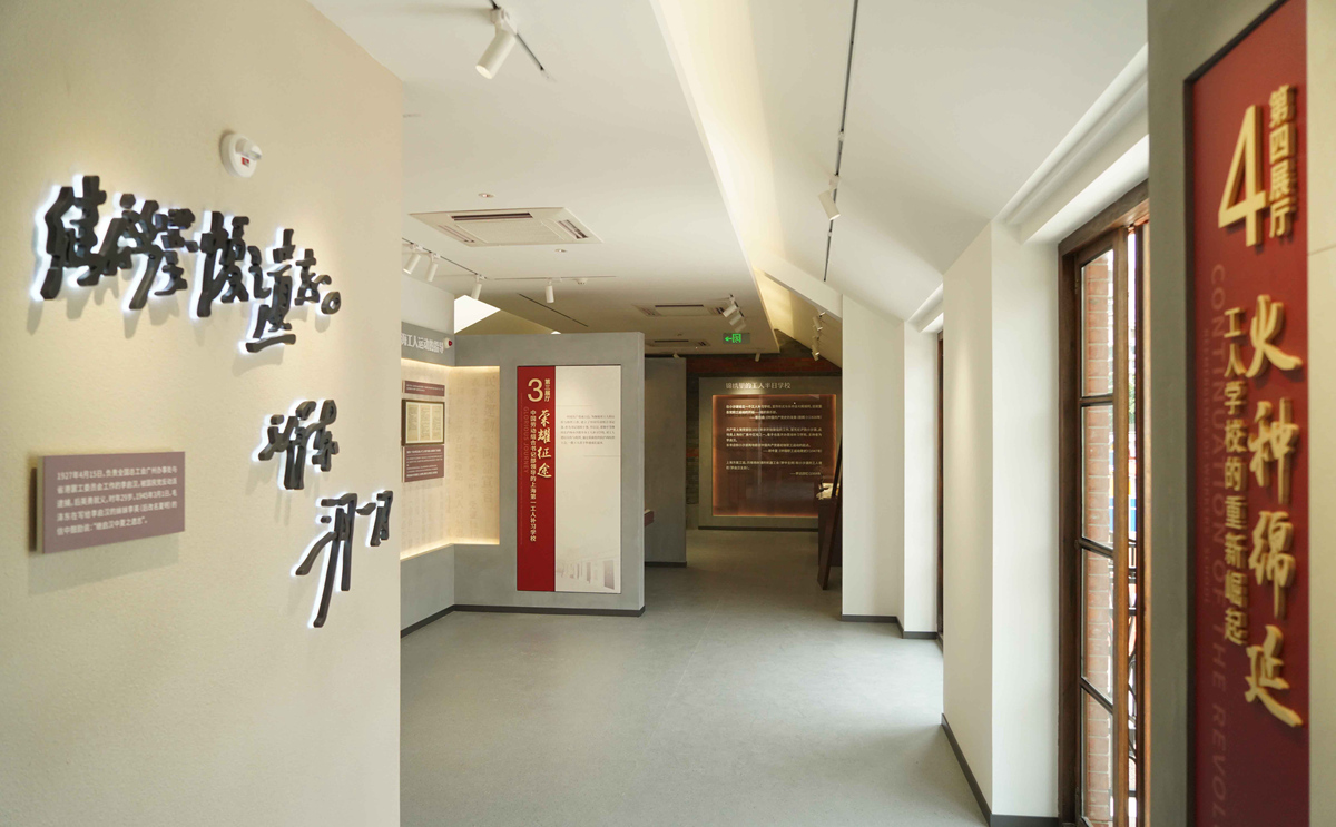 步入新馆,参观者可以看到四大展区,包括“火红序幕:建党前夕的小沙渡”“峥嵘起步:中共发起组领导的工人半日学校”“荣耀征途:中国劳动组合书记部领导的上海第一工人补习学校”“火种绵延:工人学校的重新崛起”。重点展陈了中国共产党建党初期共产党人普及党的知识、传播党的理念、巩固扩大党的阶级基础等事迹历程。